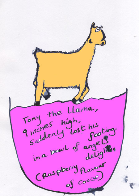 Creature 4 – Tony the Llama July 1, 2011March 16, 2013 Share this: Click to share on X (Opens in new window) X Click to share on Facebook (Opens in new window) Facebook Click to share on Tumblr (Opens in new window) Tumblr Click to email a link to a friend (Opens in new window) Email Click to share on Pinterest (Opens in new window) Pinterest Like Loading... Related