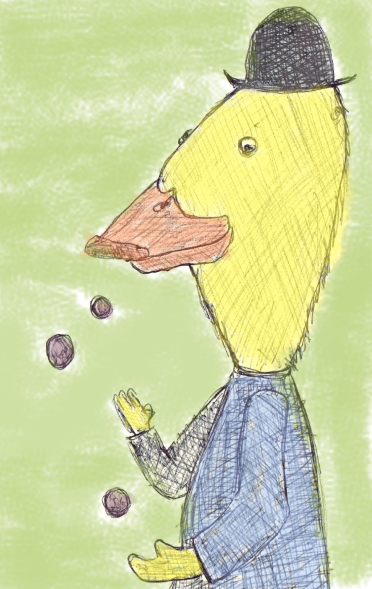 Creature 357 – Duck Juggle June 18, 2012March 15, 2013 Gladstone concentrated the hardest he had ever done. Finally, after weeks and weeks of practice, he was managing to juggle 3 balls at once. Now has was ready for the school talent show. Share this: Click to share on X (Opens in new window) X Click to share on Facebook (Opens in new window) Facebook Click to share on Tumblr (Opens in new window) Tumblr Click to email a link to a friend (Opens in new window) Email Click to share on Pinterest (Opens in new window) Pinterest Like Loading... Related