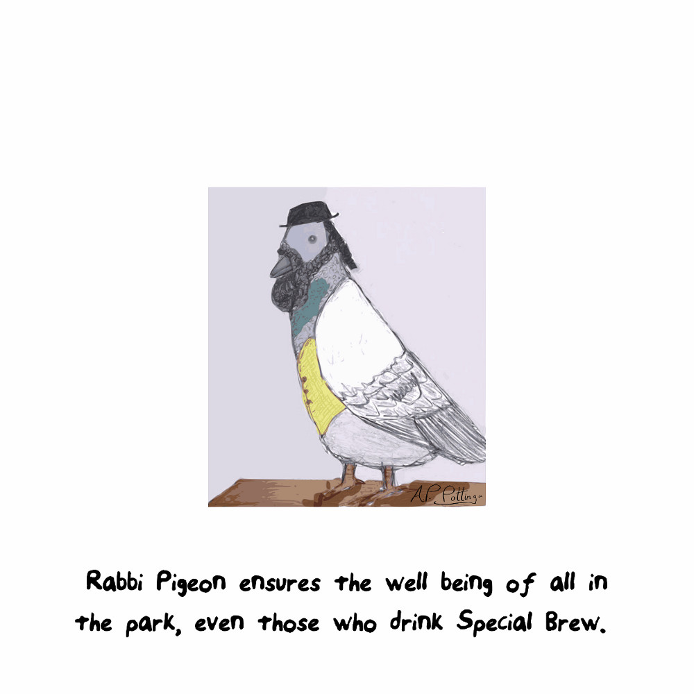 Rabbi Pigeon looks after the well being of all in the park.