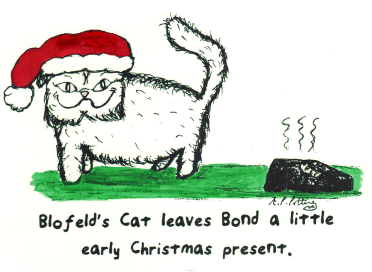 blofeldcatxmas14 Published November 5, 2014 at 1504 × 1104 Bolfeld’s Cat leaves Bond a pressie Share this: Click to share on X (Opens in new window) X Click to share on Facebook (Opens in new window) Facebook Click to share on Tumblr (Opens in new window) Tumblr Click to email a link to a friend (Opens in new window) Email Click to share on Pinterest (Opens in new window) Pinterest Like Loading...