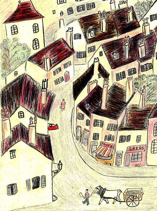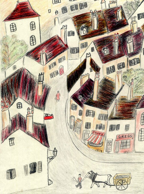 This is a lovely village background based on the wonderful drawings of Roger Duvoisin in The Happy lion.