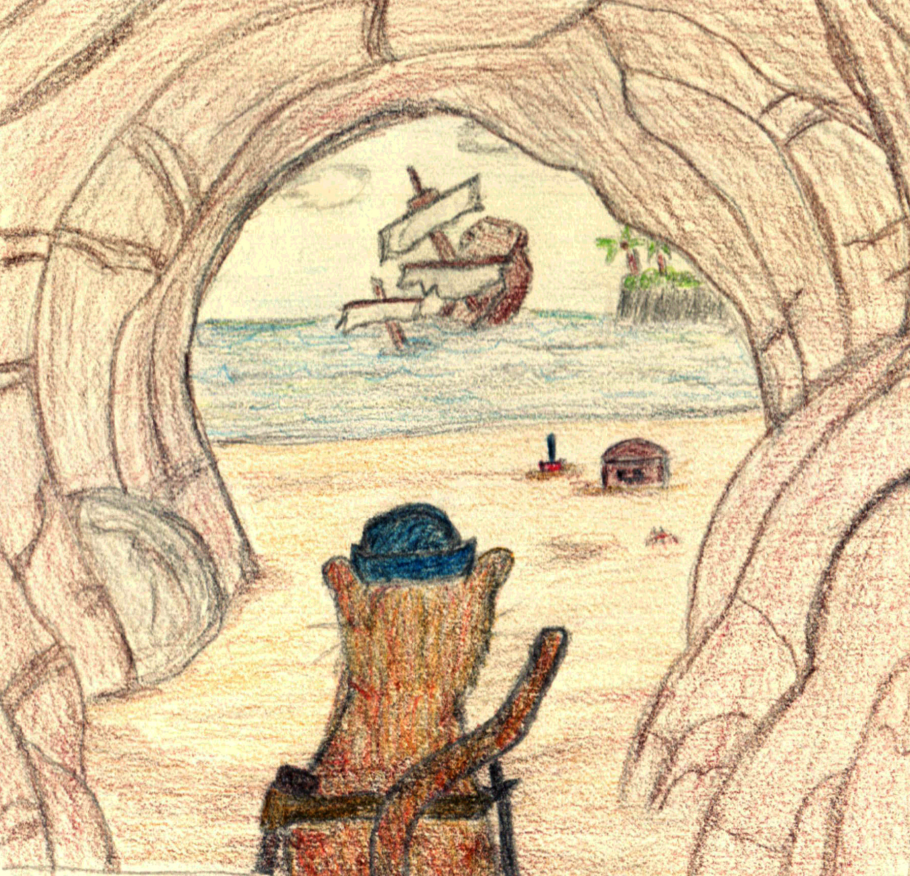 The initial scene has been drawn in pencil and each is coloured differently.