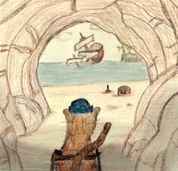 I am experimenting with colour. One of the scenes is coloured completely on the computer, one is coloured completely by hand in coloured pencil and the third is a combination of hand colouring and computer effects.