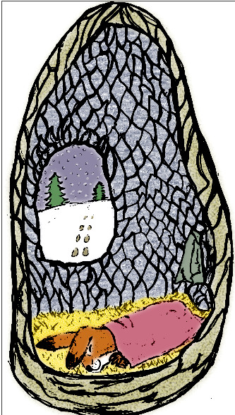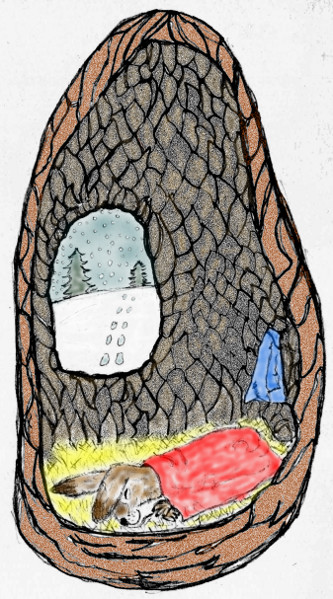 This picture of a little bunny curled up in the hollow of a tree is based on a lovely Richard Scarry drawing.