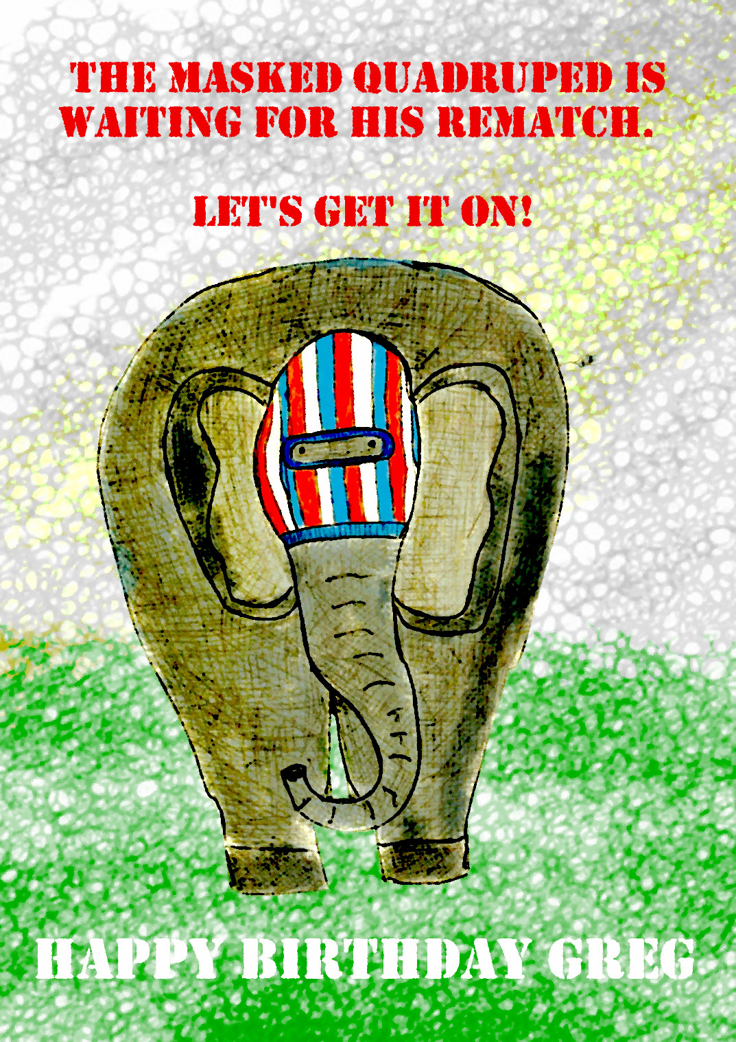 I did this Birthday card for Greg. I used The Masked Quadruped as I love that elephant: